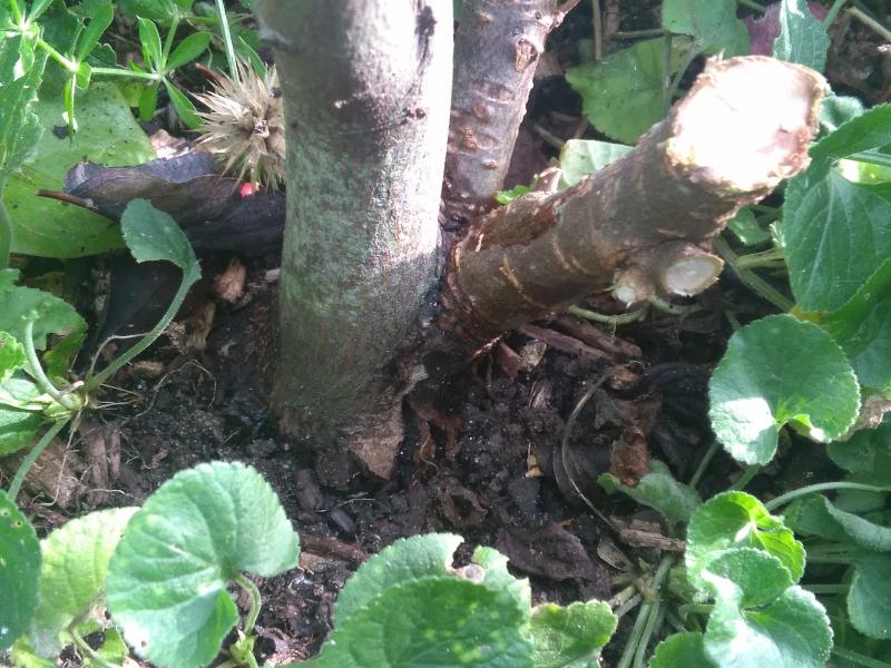 Das abgesägte ist Cotoneaster, der Ast dahinter auch. Der Ballerina geht es trotz der Auswüchse bisher gut. Die Stummel werde ich noch in Stammnähe abschneiden. Ich vermute allerdings, dass sie trotzdem wieder austreiben.