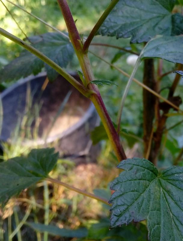 Wichtiger Punkt dabei: es ist ne weiße Johannisbeere, genauer eine Vit Jätte. Und es ist so, das ich gestern feststellen musste, das der Trieb, an dem es hauptsächlich Färbungen gab, der war, der inzwischen mitsamt dran hängenden halbreifen Beeren das zeitliche gesegnet hat. Vom optischen Eindruck her erschien mir was pilziges in Bodenoberflächen Höhe als Ursache sehr wahrscheinlich. Als einziger von allen anderen Trieben des Strauchs eingegangen. Eine 4m weg stehende Weiße aus Jüterbog färbte bestenfalls minimal und da ging auch nichts ein.