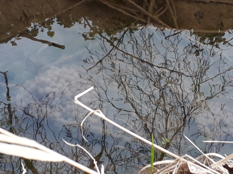 Ich habe heute beim Spaziergang am Waldrand die ersten Laichballen vermutlich vom Grasfrosch gesehen. Eine Kaulquappe war geschlüpft.