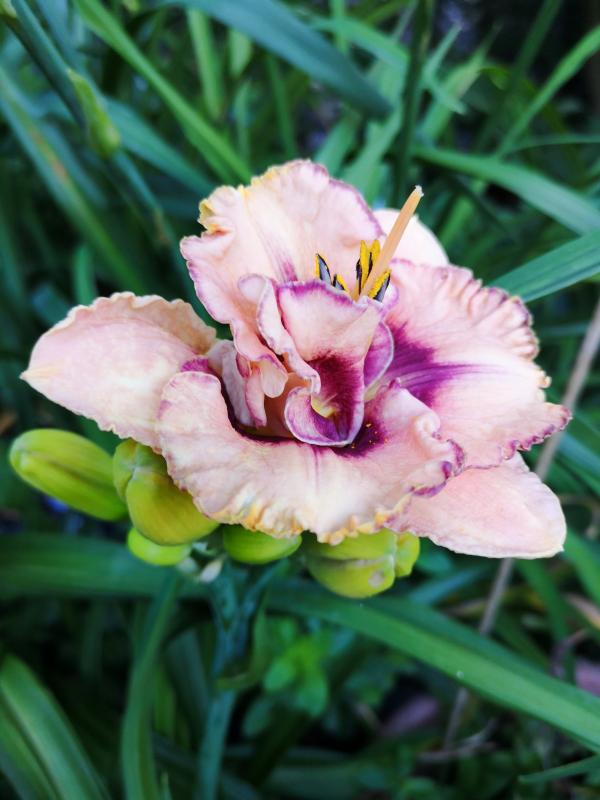 Direkt aus dem Taglilienmuseum: Chosen Love. Sie steht seit mehr als 20 Jahren im Topf und sie enttäuscht nie. Natürlich gibt es viel tollere Blüten, solche habe ich auch, aber keine ist so unproblematisch. Gestern hat sie angefangen zu blühen mit 15 offenen Blüten.