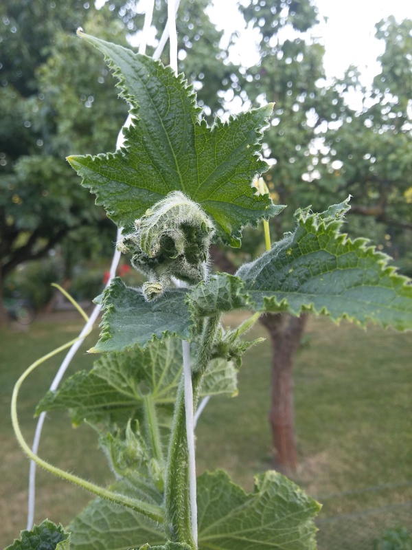 Hier kommen die Gurken mit den letzten paar warmen Tagen endlich aus dem Quark. Letztes Jahr waren sie zu der Zeit mit rund 11 Blättern schon gut Kniehhoch.
