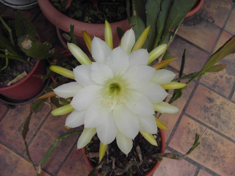 Gestern in der Nacht hat also meine "Königin der Nacht" eine riesige Blüte geöffnet und mit Vanilleduftduft um sich geworfen:
