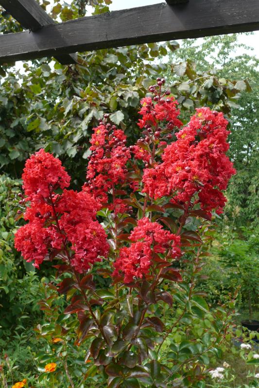 Heute haben die ersten Lagerstroemien (Zuni und Tuskarora) mit dem Blühen angefangen.