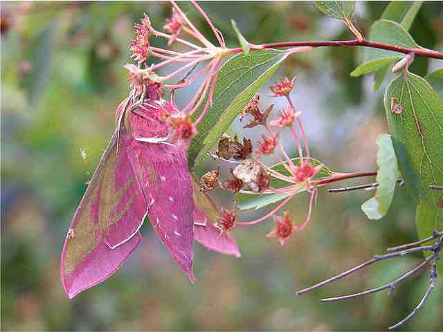 mittlerer weinschwärmerwie die raupe, so der falter: schön und sehr grosshier bilder vom juni 2005, als ich das glück hatte, einen zu finden.