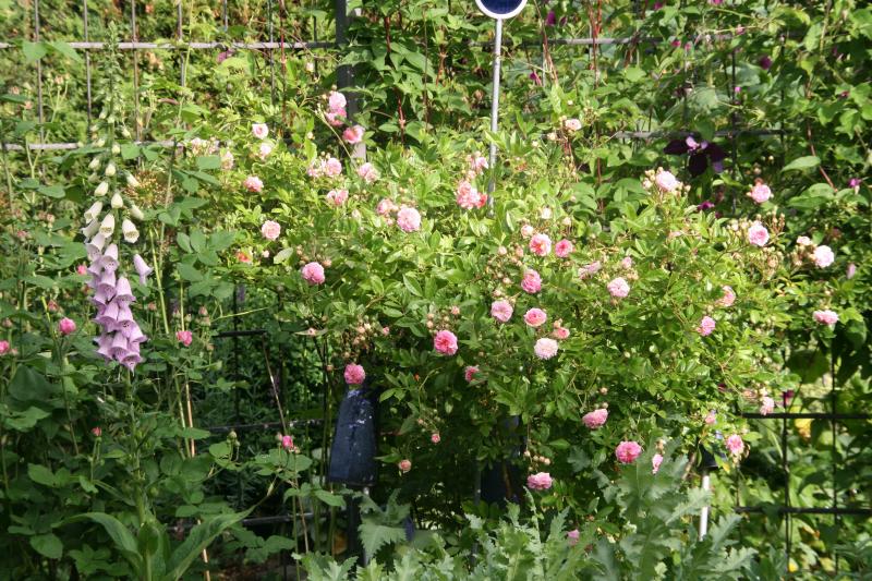 wunderschön,dein Rosengarten Elis.Welcher rosa Rambler ist denn das am Bogen rechts?