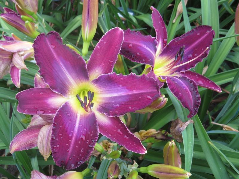 'Merlot' habe ich selber nicht, ich sah sie allerdings einmal in natura, damals wirkte sie farblich etwas matt (stumpf) auf mich. Hier steht aber 'Violet Becomes You', Stamile, 2007 (von der sie abstammt) im Garten und ich fand sie ziemlich ähnlich. Insgesamt verhält sich die Violet leider recht zickig, sie mag keine direkte Sonne und liebt anscheinend regnerisches Wetter oder täglich gut gefüllte Gießkannen. Rebloom habe ich bisher nicht gesehen und vermehren möchte sie sich auch nicht besonders gerne. Aber ich träume weiter von einem Horst mit 20 wunderschön geformten strahlend schönen Blüten. ;) :D