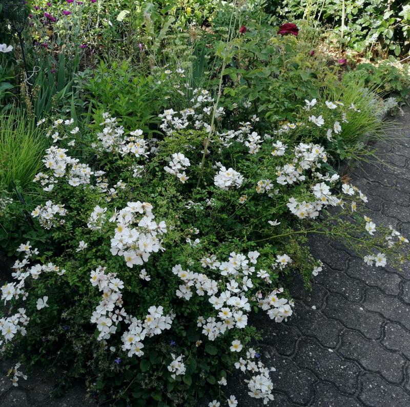 Zuverlässig hitzefest ist auch Parfum Flower Circus, die gerade noch ein duftendes Blütenbüschel zu den (bösen ;)) Nachbarn streckt.