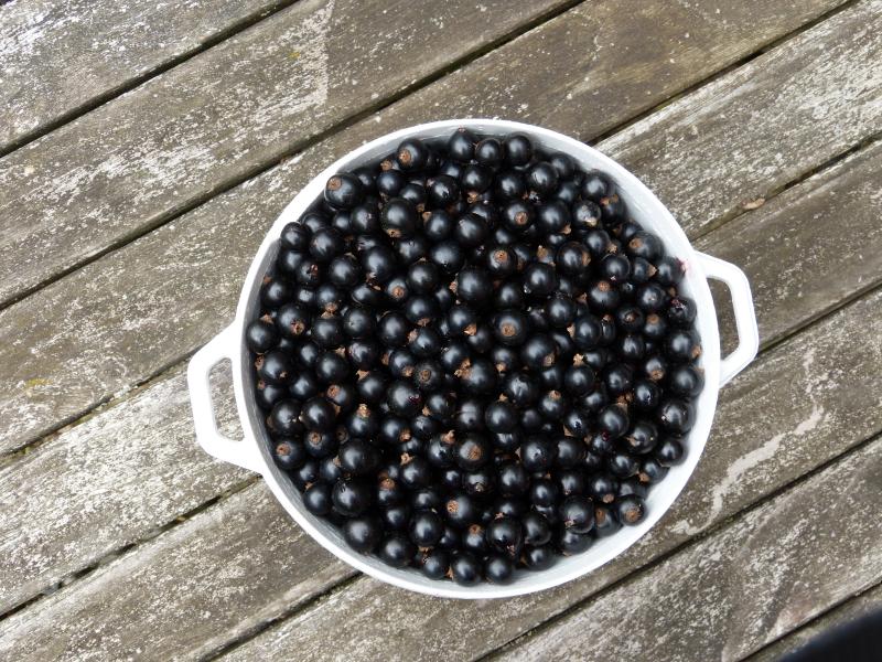 Gerade geerntet: Knapp 1,5 Kg schwarze Johannisbeeren der Sorte Ometa. Ausgezeichnetes Aroma, reichlich Cassis, leichte Süße, fast überhaupt nicht herb. Super lecker zum so Essen, trotzdem wird daraus gleich eine Marmelade gemacht - wie letztes Jahr auch (absolute Fruchtbombe, die auch gut zu z. B. Käse passt).