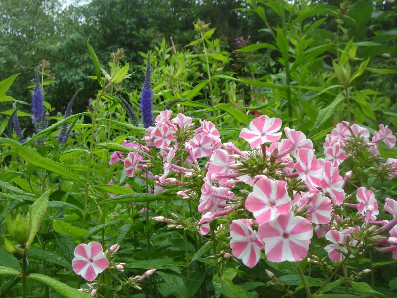 Phlox Peppermint Twist ( oder Natascha?) versus Veronica longifolia Blauriesin