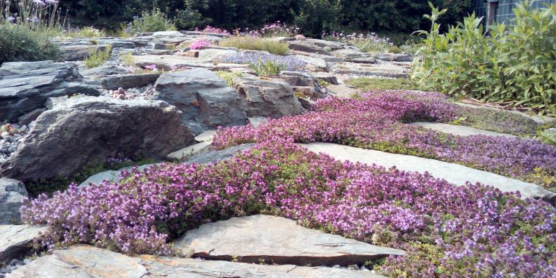 Und diesen Einblick finde ich ganz besonders speziell! Die flächige Blüte des Thymians (?) und diese Steinanlage ergänzen sich hervorragend :D