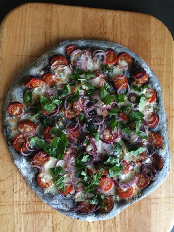 Wie Zwergo schon sagt Aktivkohle. Aber es geht auch mit Sepiatinte. Den Teig habe ich wie das Brot 18 Std gehen lassen.