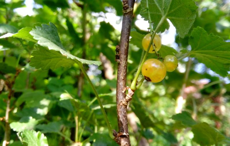 Hier meine Ave Maria, also jene, die auch am wachsenden trieb fruchten kann. Sie scheint generell nur an dem sehr jungen Holz fruchten zu wollen. Für rote Johannisbeeren sehr ungewöhnlich. Natürlich hat sie, wie es sich auch für mich gehört, einen ordentlichen Trockenschaden abbekommen