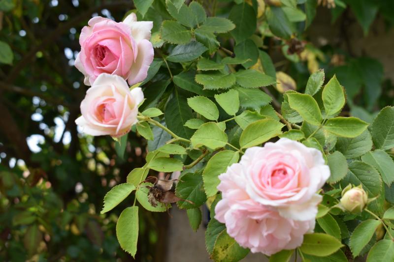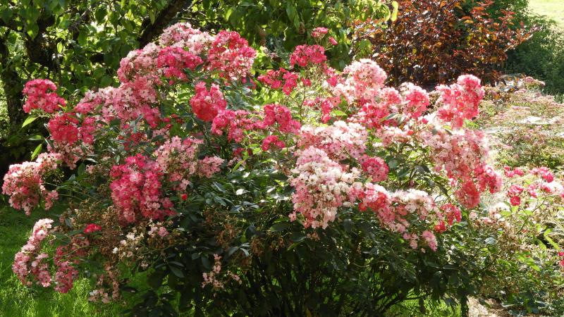 'Aurora'blüht bei fleißigem Ausschneiden eigentlich immer durch.Sie ist eine Moschatahybride,die aber recht moderat und leicht überhängend im Wuchs ist.Hier immer so in Bauchhöhe.