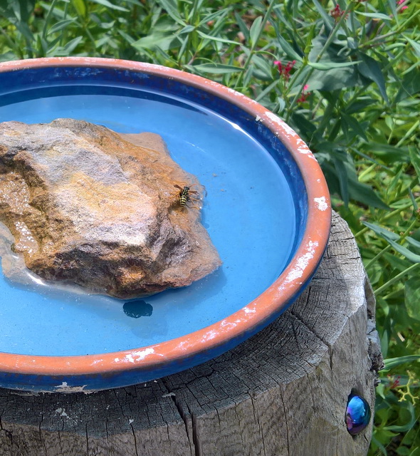 Gestern mal ein paar Wasserstellen für Insekten gebastelt. Mit Heißklebepistole fix gemacht.