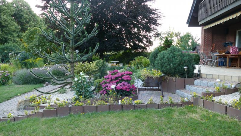 Blick auf Terrasse. Sehr schöne Araucarie.
