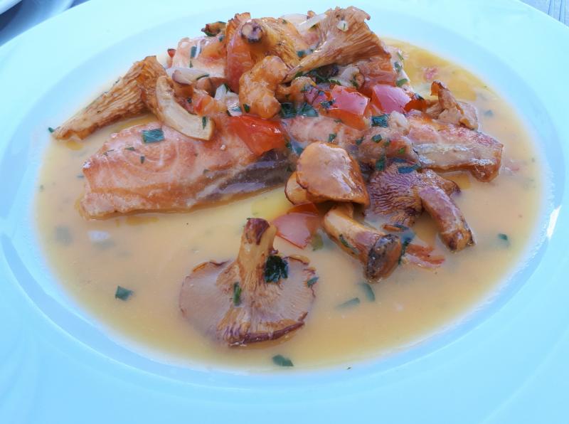 pasta: bucatini di gragnano con salami nobile, cipolla rossa, aglio, funghi freschi, grana padano riserva e olio di oliva extravergine di torbole sul garda