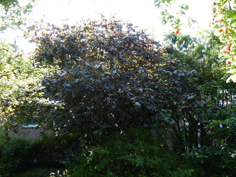 Hier meine 3 verbliebenen Haseln (von ehedem 5). Am niedrigsten mit ca. 5 m ist die rote (Zeller?) Nuß, welche aber am breitesten ist. Die beiden anderen sind ca. 6 m hoch.