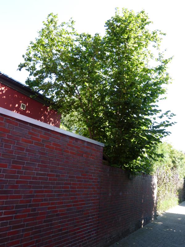 Nur zum Schuppen-Eingang, wo ich öfters seitlich herumschnippelte, trieben die Stämme mehr Laub: