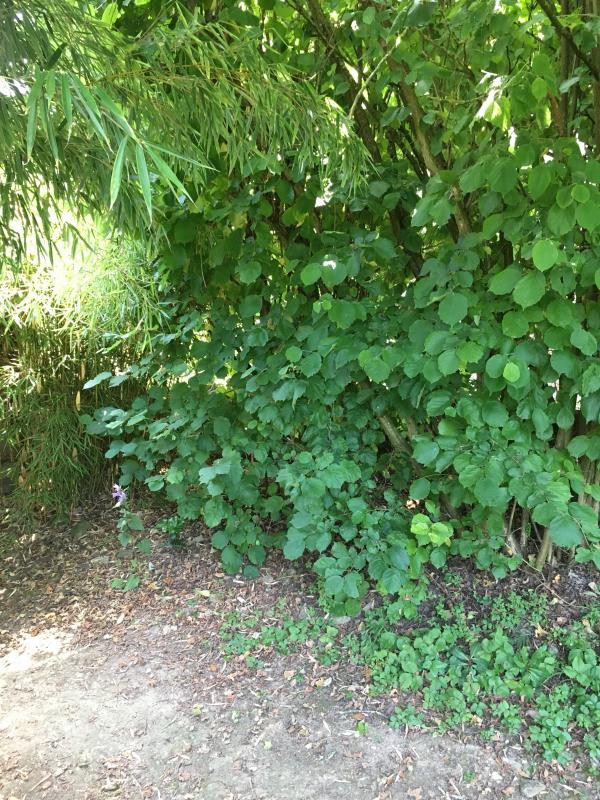 Nur zum Schuppen-Eingang, wo ich öfters seitlich herumschnippelte, trieben die Stämme mehr Laub: