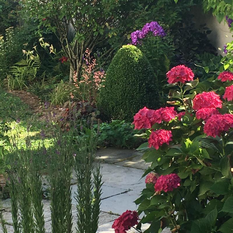 Am Morgen früh war es grad angenehm im Garten, aber immer dem Schatten nach.