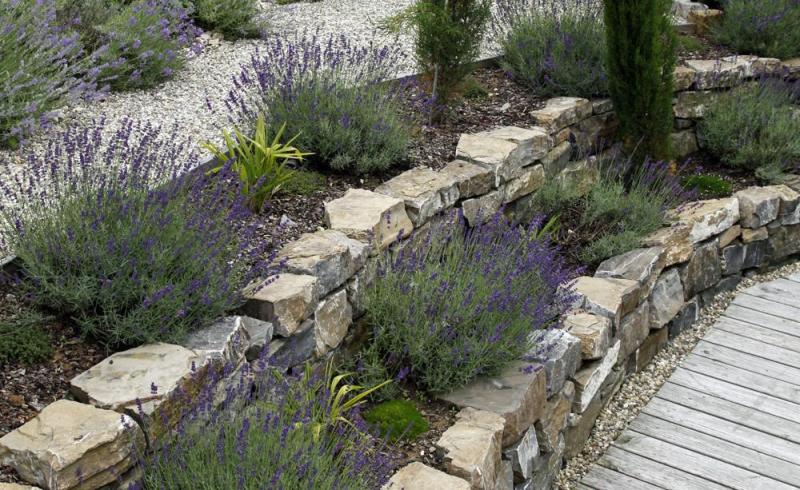 Dann mit Lavendel und Gräsern bepflanzen. Ähnlich wie auf dem Foto.