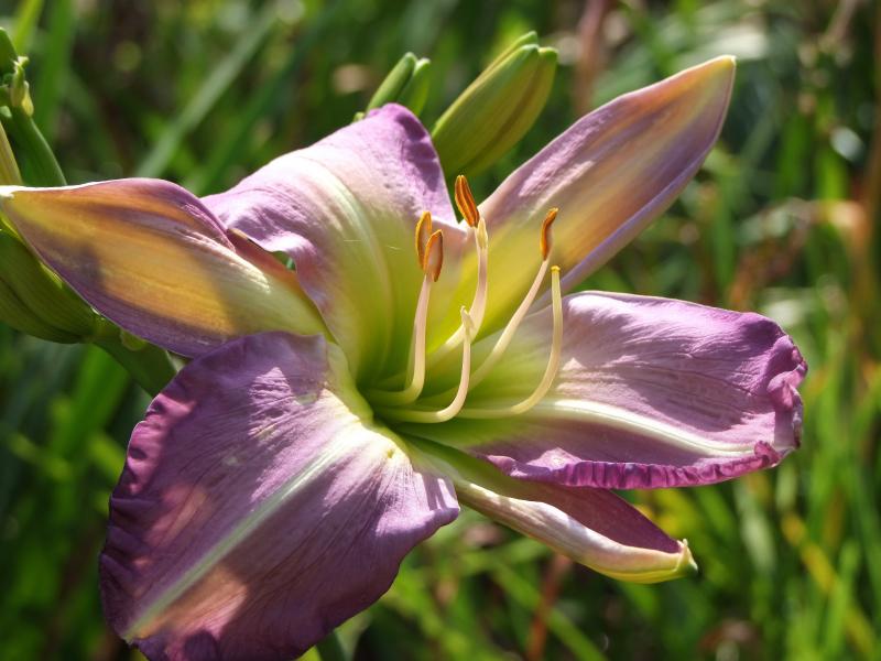 Ich muss euch unbedingt mal 'Blue Dolphin'zeigen.Es ist die allererste Blüte überhaupt,daher heute früh noch nicht so richtig gut.Aber ich freue mich schon seit gestern darauf und war ganz gespannt.Ich kann kaum glauben,dass er diploid ist,denn der Stängel(er hat ja erst einen dieses Jahr) ist sehr dick und stabil.