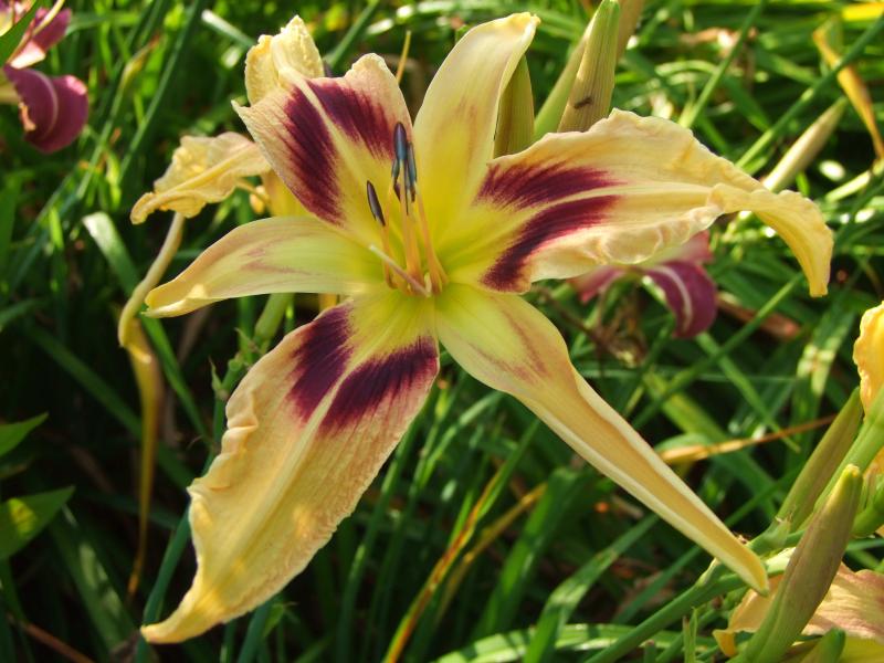 Ich muss euch unbedingt mal 'Blue Dolphin'zeigen.Es ist die allererste Blüte überhaupt,daher heute früh noch nicht so richtig gut.Aber ich freue mich schon seit gestern darauf und war ganz gespannt.Ich kann kaum glauben,dass er diploid ist,denn der Stängel(er hat ja erst einen dieses Jahr) ist sehr dick und stabil.
