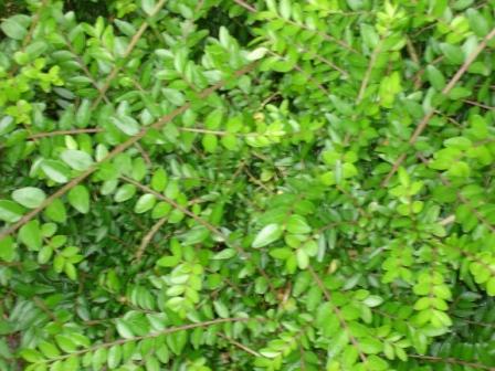 Das ist dann entweder Lonicera nitida oder L. pileata. Letztere wächst sparriger und etwas aufrechter als L. nitida ... ich kann die Beiden nur am Wuchs unterscheiden, häufiger im Handel dürfte nitida (vor allem die Sorte 'Maigrün') sein.