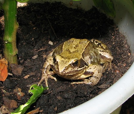 Hallo,ich hatte den Tomatenfrosch schonmal in einem anderen Thread vorgestellt. Er ist auch kein Einzelkind, da springen immer mehrere in unterschiedlichen Größen zwischen den Tomatentöpfen herum, vielleicht ist dort noch das meiste Wasser zu finden.Der hier ist nun schon doppelt so groß, wie damals als er im Topf gesessen hatte ( zumind. denke ich, dass es der gleiche Frosch ist