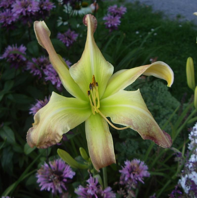 Der dagegen hat kleine Blüten, aber zwischen der niedern Grape Velvet und der hohen So Many Rivers kommt sie richtig gut zur Geltung.