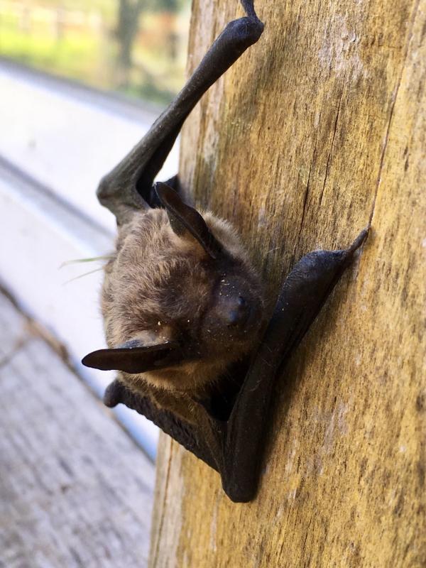 Dann hol ich auch noch h meine Fledermaus aus dem Keller, wo ich sie gestern gezeigt hab. Sie krabbelte am Mittag in voller Sonne im Paddocksand. Ich hab sie dann an die Stallwand gesetzt, von dort ist sie rüber an die Hauswand, und wenig später war sie weg . Ich hab Fledermäuse bei mir auf dem Dachboden.