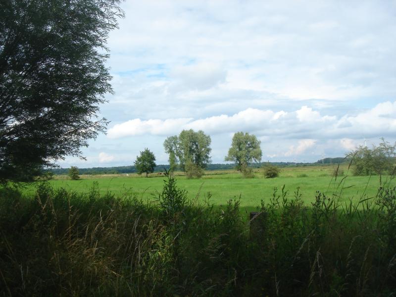 Schmalblättriges Weidenröschen, mit grünem Saum des Geestrückens ( Stader Geest ) im Hintergrund.