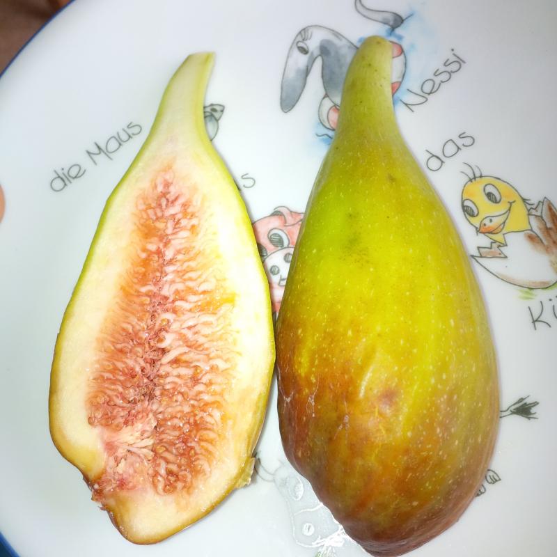 Heute die erste Feige von Babits verkostet. Hat ein ausgewogenes Aroma und eine mittlere süße. Hatte bedenken, daß sie recht süß ist da schon ein Honigtropfen raus lief. Sehr saftig und sehr dichtes inneres.