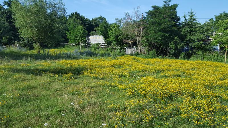 Die "Wiese" ist sehr hochgewachsen, vieles blüht - ich weiß absolut nicht, wie ich da eine Sommermahd machen soll. Das lasse ich hübsch bleiben. Ich werde vielleicht Ende September einmal rübergehen und alle hohen Pflanzen kräftig schütteln und dann einmal mit der Sense kurz mähen und das Mähgut abharken. Anders kann ich es mir einfach nicht vorstellen....