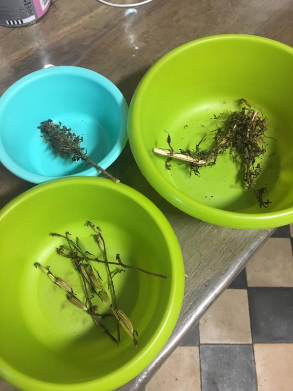 Hab letzte Woche vor der Wiesenmahd die Samenstände eingesammelt, um sie gezielt aussäen zu können - der „Staub“ unten in den Schalen ist der Orchideensamen: