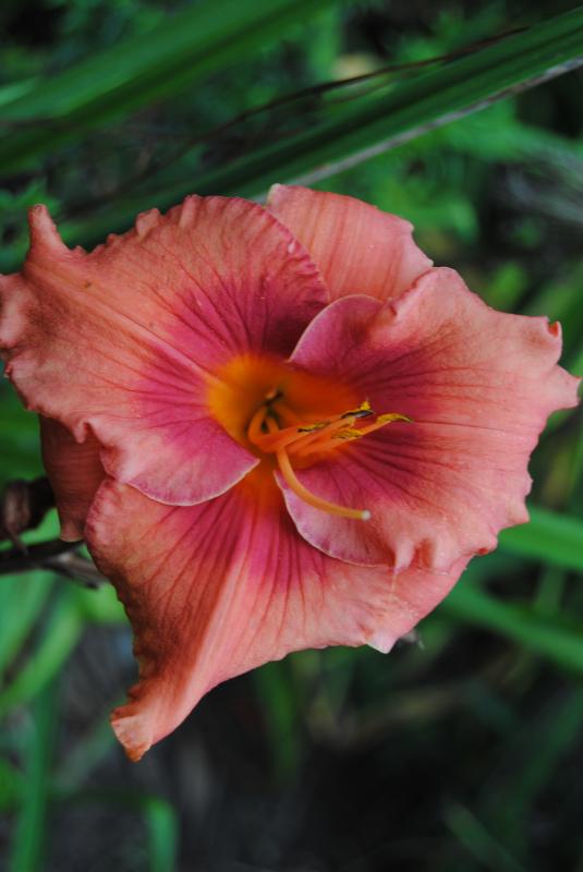nein, sowas wild kaskadiges passt gar nicht – augustfreude macht ganz klar und gerade und sauber blütentrompeten, die sepalen und petalen gleichlang und in gleichem schwung nach außen gekehrt, ohne twists und geschläufel. dazu hat sie tief unten was grünlichglühendes im chromgelb, ich bin ganz begeistert! :D