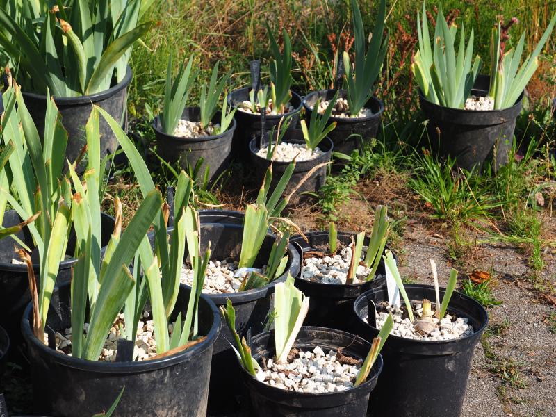 Tatsächlich habe ich es dieses Jahr geschafft die Iris-Vereinzelungs-Anlage neu durchzusortieren. Viele der iris sind umgepflanzt, meist nach Sorte getrennt. Immer noch gibt es viele Rhizome von denen ich noch nicht weiß welche Iris es ist. Ganz besonders ärgerlich: In dem Sortierwahn habe ich eine Iris (verm. Ambassadeur) wieder mit dem vermutlichen Sämling davon wieder in einen Topf geworfen. Grrrrrr. Nun ja es sind nicht so viele, ich pflanze sie jetzt wieder auf und dann in zwei drei Jahren sieht man mehr.