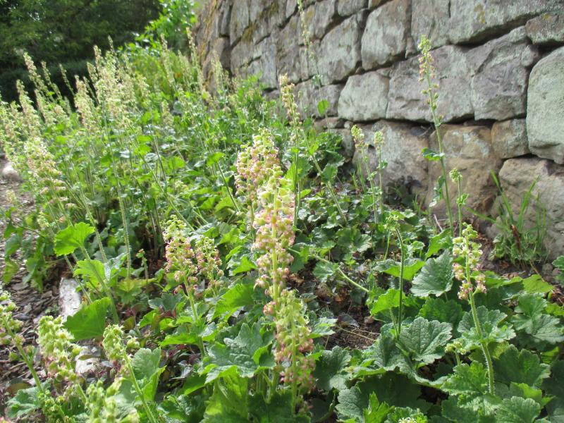 Im früher beschatteten Bereich gedeiht noch immer Tellima grandiflora, sommers leidet sie sehr, sieht aber im Frühjahr wieder frisch aus.