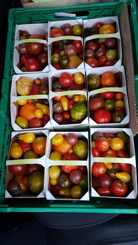 das sieht ja lecker aus! Dieses Jahr habe ich zwar auch unterschiedliche Sorten und unterschiedliche Größen, aber fast alle in gelb oder rot :)