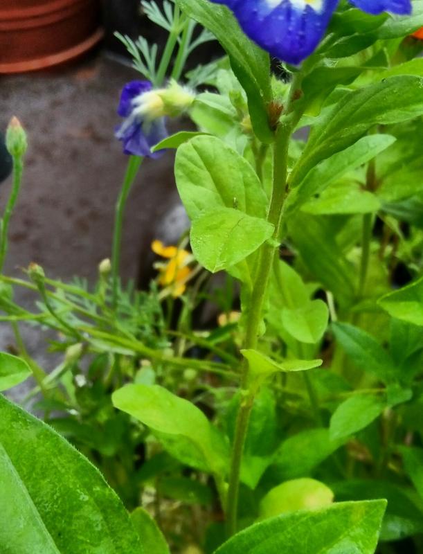 Dachte ich auch erst. Aber dazu passt das Laub nicht, oder habe ich da die Blätter falsch sortiert? ??? Das Laub (oben rechts) erinnert mich an Petunie.