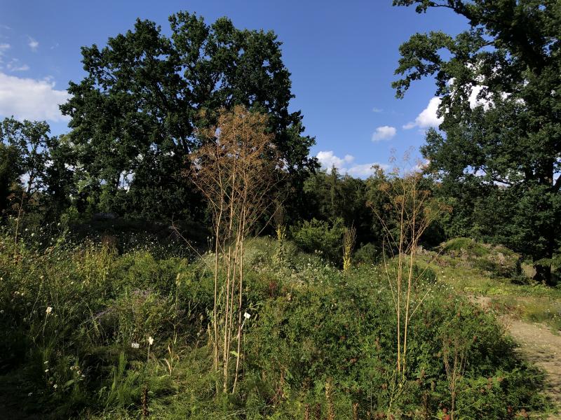 Anfang August blüht vieles nicht mehr, aber auch viele Samenstände sahen im späten Licht wunderschön aus. Unter dem Aspekt - Präriegarten - den wir ja hier auch gerade etwas beackern, war es auch sehr lehrreich - es müssen flächige Pflanzungen sein, keine Sammlungen...Es gibt auch einiges an "aufgegebenen Beeten". So etwas sieht immer bissel traurig aus, aber vielleicht sind da ja ganz große Dinge geplant.