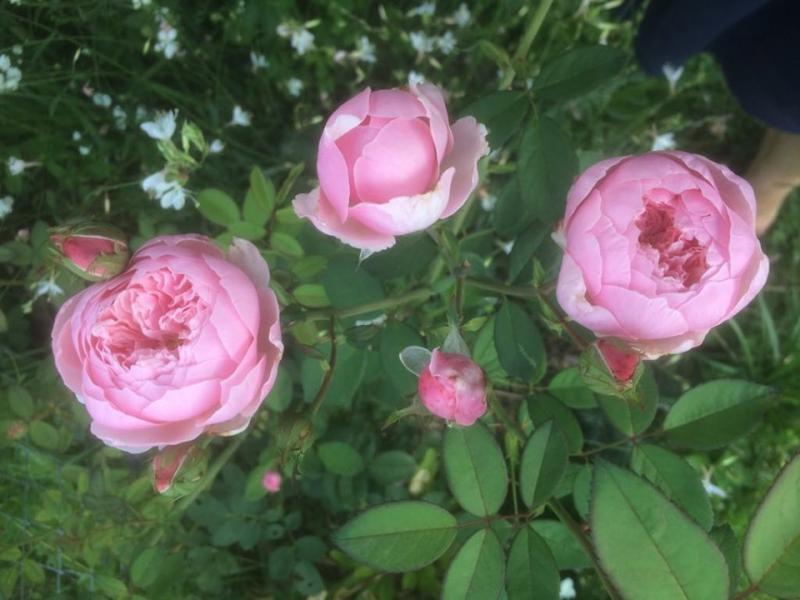 The Alnwick Rose schickt hier staemmige neue Triebe mit vielen Knospen hoch, es ist eine Freude!