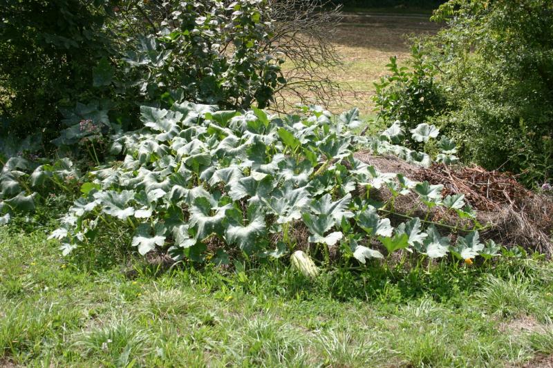 Nach so schönen Beispielen muss ich Euch auch meinen Kompost, Kürbisüberwachsen, zeigen.