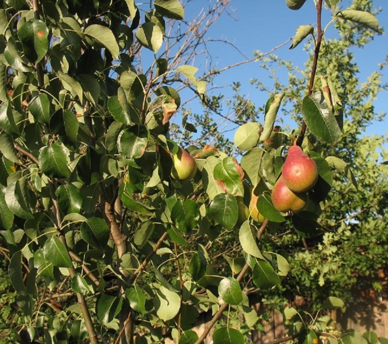 Bei deinem Baum fallen bei den besonnten Birnen die hellen Lentizellen auf, die rot umhöft sind, die variable Form und die braunen Stiele.