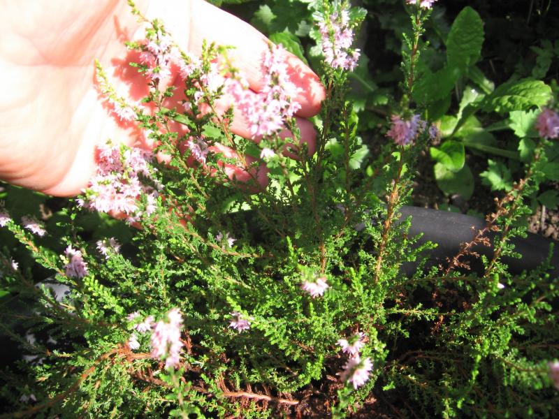 Zuerst ein heute aufgenommenes Foto einer Besenheide, die seit über einem Jahr neben einer Kulturheidelbeere in einem Kübel mit reinem Kaffeesatz wächst. Gedüngt wurde im ersten Jahr mit Osmocote-Langzeitdünger für Azaleen und Hortensien, heuer im Frühjahr nochmal mit Osmocote, dann mit Ammoniumsulfat: