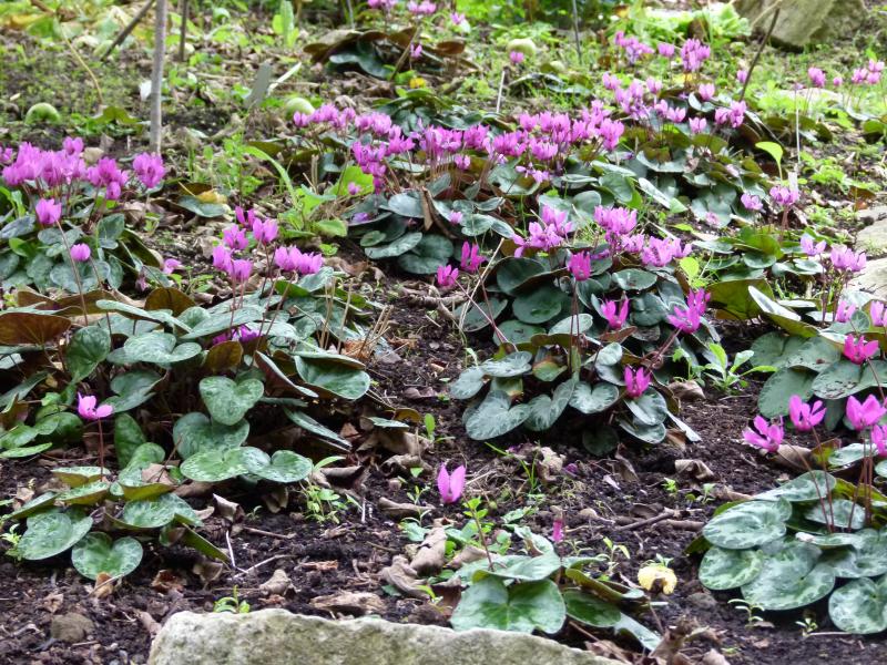 Würden sich Cyclamen purpurascens in einem relativ dichten Märzenbecherteppich halten? Die Fläche soll eine Tröpfchenbewässerung erhalten.