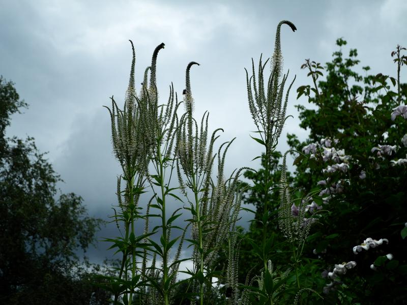 Aber auch die vielen anderen Gartenimpressionen sind herrlich, sei es der wunderbar üppige Gehölzgarten von goworo, die prächtigen Staudenbeete von Mata Haari, oder Dornroses hochaufragendes Veronicastrum, was wahrscheinlich ebenso wie die Agastachen hier mangels ausreichender Feuchtigkeit und zu schwerem Boden nicht funktionieren wird.