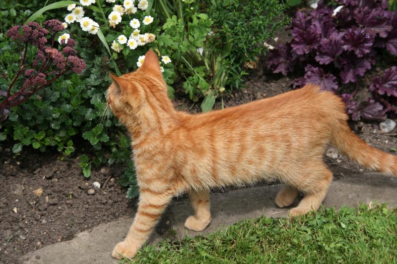 Ja so ungefähr ;). Aber heute morgen hat er mich so drangsaliert, das ich ihn heute das erste mal rausgelassen habe, bzw. er ist immer noch draußen. Ich sage Euch das war ein Bild für Götter. Dieses Staunen, er wußte gar nicht wo er zuerst hinschauen sollte und überall schnupperte er rum. Er war dann auch mal eine Weile weg, habe ihn gerufen, er kam dann sofort aus dem Gebüsch raus. Er war auch schon ganz oben in meiner Eibe an der Straße. Er ist ein geschickter Kletterer. Diese Tage so eingesperrt sein im Haus, das muß für ihn ne Qual gewesen sein. Er war ja noch nie so lange drinnen, die Katzen hatten auf dem Bauernhof ja alle Freiheiten. Er kam auch schon zu mir auf die Liege zum kurzen schmusen, legte sich auch zwischendurch auf meinen Stuhl, schnupperte ausgiebig dran. Dann war er schon wieder weg. Heute abend wird er fertig sein.