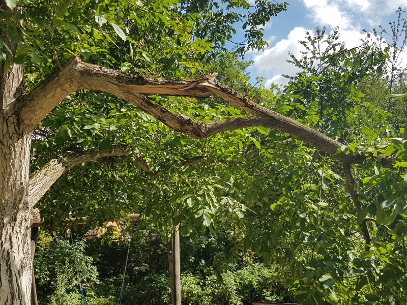 Über das wie der Bruchstelle soll bitte jeder nachdenken der Baumschnitt betreibt, oder der auch mal unter einem Baum steht oder sein Auto dort parkt. Gerade der alte Ableitungsschnitt in der Mitte sollte nachdenklich machen.