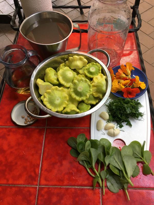 Ich habe jetzt mal etwas Gemüse eingelegt in einer Salzwasser Essig Lösung, das Rezept ist türkisch und heißt Tursu, man kann alles an Gemüse nehmen , wichtig ist das es noch sehr jung ist, heute habe ich es mit ganz kleinen zarten patisson gemacht und etwas Kapuzinerkresse Blüten, und oben drauf gelben Sommer Portulak,ich bin gespannt wie es wird, wenn ich darf verlinke ich das Rezept hier